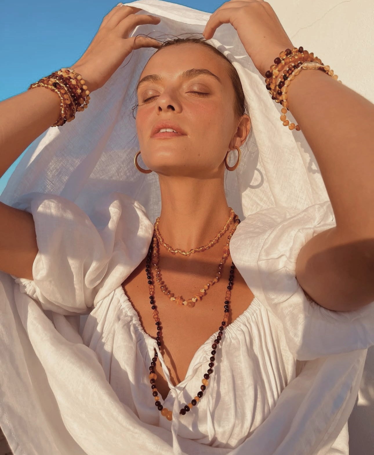 Handmade jewellery pieces from our Palm Beach studio. Sharing our new bracelet collection and our Honey shade, a blend of Cognac and Lemon now available in both adult and baby necklaces. Enjoy special savings at checkout when you bundle and match with your little one or create a necklace and bracelet set.